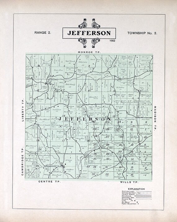 1902 Map of Jefferson Township Guernsey County Ohio Etsy